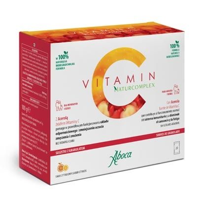 Vitamin C Naturcomplex es un producto 100 % natural que proporciona la dosis diaria recomendada de Vitamina C junto a las otras sustancias presentes de forma natural en el extracto de Acerola, como los flavonoides (entre los cuales quercetina y antocianinas).