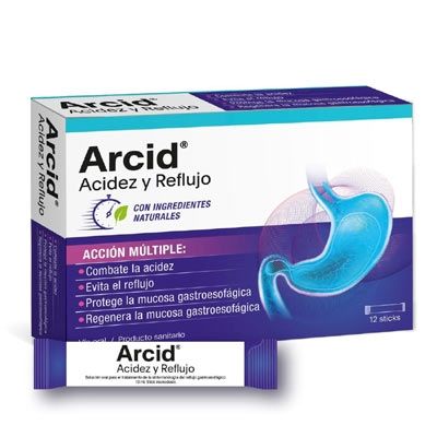 Arcid es un producto sanitario indicado para el tratamiento de todos los síntomas asociados al reflujo gastroesofágico tales como acidez, ardor, esofagitis, regurgitación ácida, dolor estomacal, dolor en el pecho y tos seca.