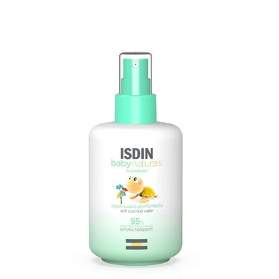 Agua suave perfumada sin alcohol, con un 95% de ingredientes de origen natural, que hidrata y protege la delicada piel del bebé.