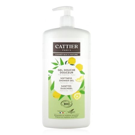 Este gel de ducha Cattier orgánico y vegano, para usar en la ducha o en el baño, limpia suavemente y preserva el equilibrio natural de la piel.