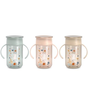 Las asas facilitan el agarre del vaso para el bebé y le ayudan a aprender a beber inclinándolo sin derrames.