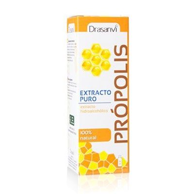 Própolis extracto puro, es un complemento alimenticio a base de própolis puro, extraído directamente sobre una base alcohólica. No posee conservantes, ni colorantes, se trata de un extracto 100 % puro a partir de una materia prima de primera calidad. El própolis es una sustancia elaborada por las abejas, a partir de componentes resinosas de las plantas. El própolis está formado por resinas, bálsamos, aceites esenciales y materia orgánica, entre las que destacan los flavonoides como la galangina y la quercitina. Su presentación en forma líquida también permite el uso externo, pudiendo enriquecer la crema hidratante, la pasta de dientes o el champú. Además Própolis extracto puro se presenta en un cómodo envase de 50 ml, y dotado de un gotero, que permitirá una dosificación precisa y cómoda.