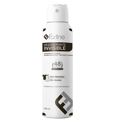Farline Desodorante Spray Invisible ayuda a reducir la formación de manchas blancas en la ropa oscura y de manchas amarillas en la ropa clara.