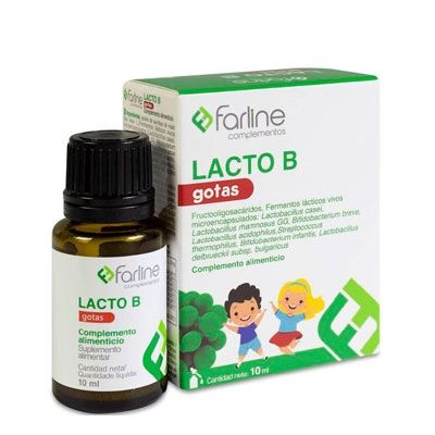 Farline Lacto B Gotas es un complemento alimenticio formulado a base de aceite de maíz, Fructooligosacáridos, Fermentos lácticos vivos microencapsulados: Lactobacillus casei, Lactobacillus rhamnosus GG, Bifidobacterium breve, Lactobacillus acidophilus,Streptococcus thermophilus, Bifidobacterium infantis, Lactobacillus delbrueckii subsp. bulgaricus.