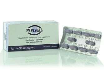 FV Visual es un complemento alimenticio que aporta zinc, arándanos (antocianósidos) y luteína. El zinc contribuye a un mantenimiento adecuado de la visión ya que ejerce varias funciones en relación con la función visual. Además desempeña un papel como antioxidante frente al estrés oxidativo.