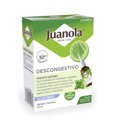 Juanola Descongestivo Spray Nasal es un producto sanitario para el tratamiento de enfermedades respiratorias en las que la hipersecreción de moco es una complicación clínica, como el resfriado común, rinitis que puede ocasionar una rinosinusitis aguda o crónica y rinitis alérgica.