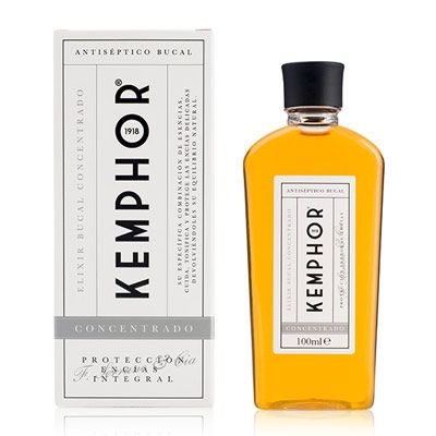 Kemphor Elixir Concentrado es un antiséptico, antiinflamatorio y antimicrobiano de acción prolongada. Cuida, tonifica y protege los tejidos gingivales manteniendo su equilibrio natural. Alivia el dolor producido por infecciones o pequeñas heridas.