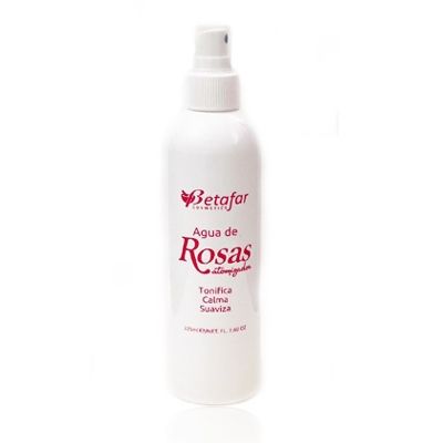 Betafar Agua de Rosas Tonico Hidratante está realizada a partir de un hidrolato procedente de pétalos de rosa damascena (híbrido derivado de la Rosa Gallica y la Rosa Moschata). Utilizado en cosmética por su aroma y propiedades beneficiosas.