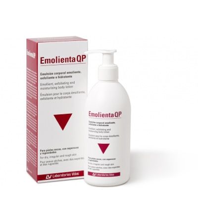 Emolienta QP es una emulsión corporal específicamente diseñada para pieles ásperas y rugosas con sequedad.