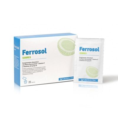 Ferrosol sobres - Aporte de hierro. Ferrosol sobres es un complemento alimenticio a base de Hierro Sucrosomial, vitamina C y vitaminas del grupo B, útil para el aporte adecuado de dichos nutrientes en casos de ingestas insuficientes o por aumento de las necesidades del organismo.