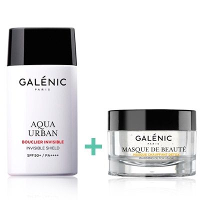 Nuevo pack de Galenic, compuesto por un Galenic Aqua Urban Fluido Invisible Contaminacion Spf50+ 40ml + Galenic Mascarilla Calor Detox 50ml