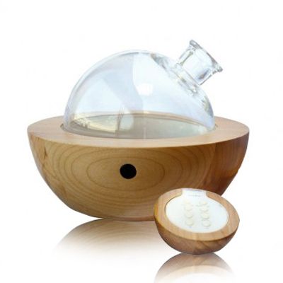 Difusor ultrasónico de aromas YUN. Descubra el poder de la terapia de los cinco sentidos, que combina música de fusión, luminoterapia y aromaterapia con el uso de materiales nobles (madrea y vidrio).