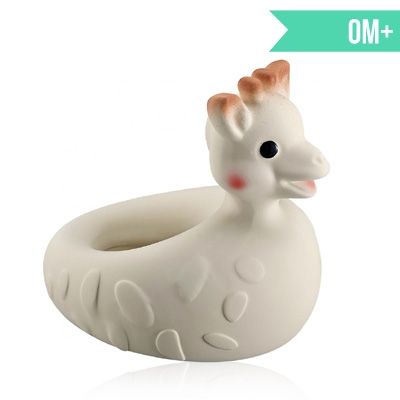 El bebé disfrutará mordisqueando las distintas partes de la cabeza de Sophie (orejas, cuernos, etc.), su cuerpo en forma de anillo flota en el agua y es fácil de agarrar por las pequeñas manos.