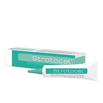 Stratacel es un apósito para heridas avanzado, transparente y semioclusivo que se utiliza después de procedimientos de rejuvenecimiento fraccionado. Fue desarrollado con una viscosidad más baja que facilita su esparcimiento y remoción.
