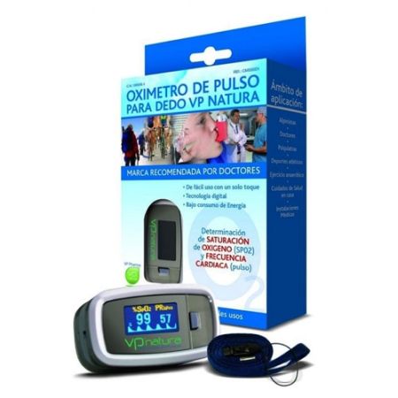 El Pulsioximetro Vp Natura a través de la punta de los dedos es un dispositivo medico no invasivo destinado para la comprobación en el acto de la saturación de oxigeno de la hemoglobina arterial (SP02) y de la frecuencia del pulso de pacientes adultos y pediátricos en casa y en ambientes hospitalarios (incluyendo uso clínico en anestesias, cuidados intensivos, cirugías, internistas etc). Este dispositivo no esta destinado para motorización continua.