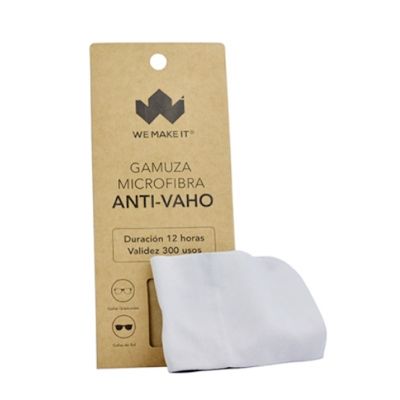 La gamuza anti-vaho de We Make lt, tiene unas propiedades extraordinarias para evitar el vaho en las lentes oftálmicas. Válido para cualquier tipo de tratamiento de lentes, tiene una duración de 12 horas, y es válido para unos 300 usos, siempre que se utilice de una forma adecuada, tal y como se explica en el embalaje.