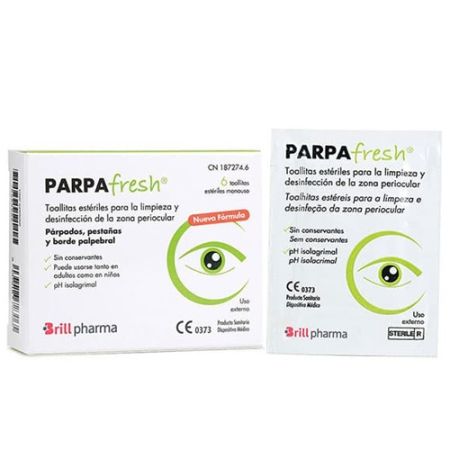 - Parpafresh permite una limpieza suave y refrescante, elimina escamas secas, o grasas, mucosas, que se acumulan en el borde de los párpados, neutraliza la carga bacteriana, lo que inhibe progresivamente la formación de secreciones.