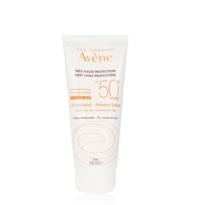 La Leche Mineral SPF50+ de Avéne de muy alta protección de las pieles intolerantes o fragilizadas. Eficaz contra el conjunto de la radiación solar (UVB-UVA largos y cortos). Certificado UVA conforme. MUY resistente al agua.