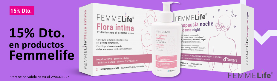 Femmelife Menopausia Noche 30 CapsPrecio especial 10,40 € Precio habitual 12,24 € -