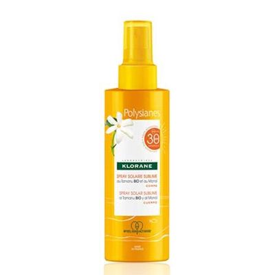 Klorane Polysiane SPF30 Spray Solar Sublime con una protección Spf30, resistente al agua y fotoestable, deja la piel satinada y protegida frente al sol, envuelta en un perfume embriagador de Flores de Tiaré.