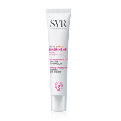 SVR crea SENSIFINE AR Crème SPF50+, un cuidado anti-enrojecimiento calmante de muy alta protección y el primer producto 2 en 1 que protege y calma la piel reactiva, propensa a la rosácea. Sus ingredientes activos altamente concentrados disminuyen la intensidad del enrojecimiento y reducen las sensaciones de sobrecalentamiento.